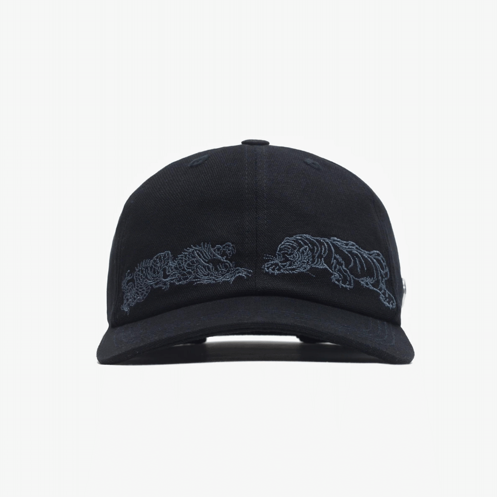 6 panel com estrutura leve frontal Bordado em cinza chumbo frontal com o Dragão e o Tigre