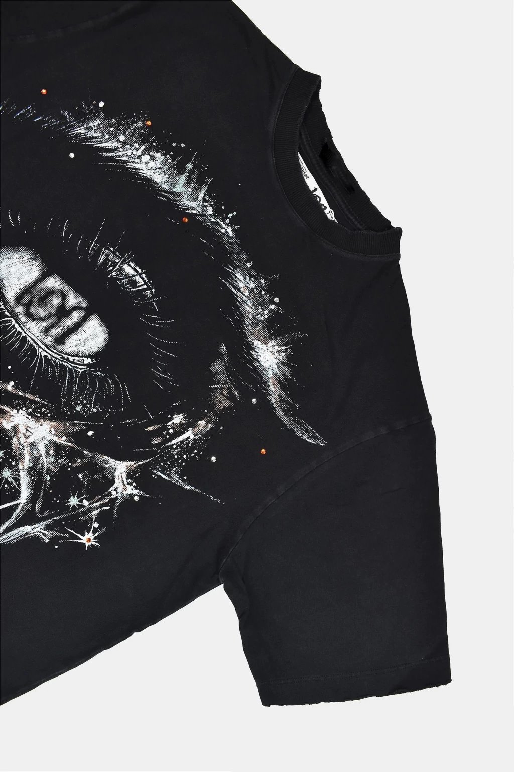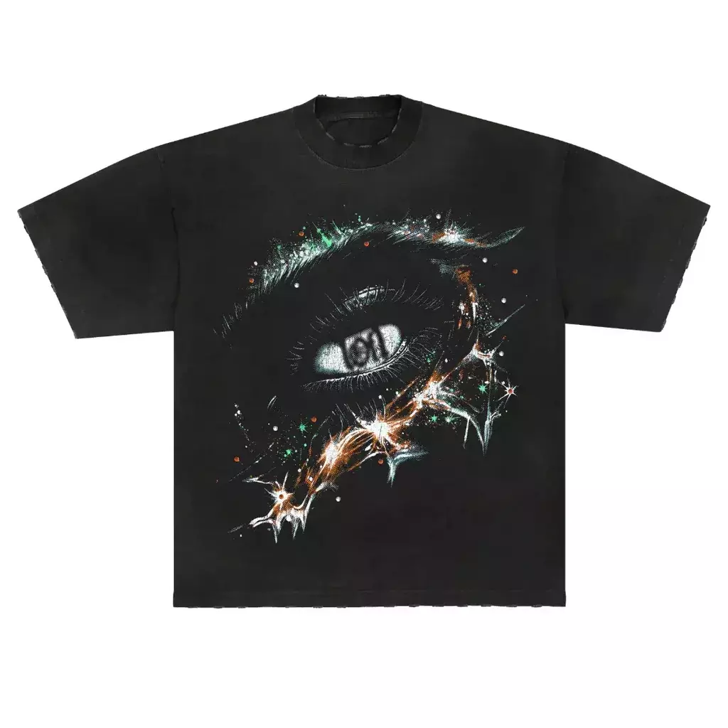 A Camiseta da Exclusivist (1OF1) une extravagância e atitude em uma peça que transita entre o street e o psicodélico. Com modelagem boxy levemente alongada, é confeccionada em malha 100% algodão de alta gramatura com efeito estonado que entrega textura e personalidade. O destaque fica por conta dos strass de cristal coloridos aplicados por toda a peça e pela estampa frontal com dados multicoloridos em uma estética espacial alucinante, carregando o logo 1OF1 em evidência. Gola, mangas e barra com leve desgaste reforçam o visual vivido, ideal para quem busca se destacar com autenticidade.