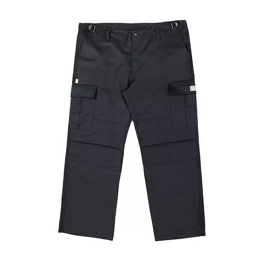Calça Track em poliamida com reforço de tecido na região do joelho.